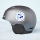 Este adesivo de vôlei apresenta a imagem realista de um vôlei azul claro e escuro e branco cercado pela frase "O tribunal de vôlei é o meu lugar feliz" e dois contornos cardíacos em estilo casual, manuscrito, letra azul - personalize o nome do atleta & número de camisa - de katz_d_zynes