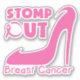 Este design apresenta o texto "Cancer da mama estomp out" com gráficos de calçados cor-de-rosa giro de salto alto. É perfeito para irmãos, famílias, amigos e apoiadores de pacientes de cancer mamário em outubro. Pode também ser um presente encorajador ou estimulante para sobreviventes e guerreiros do cancer.