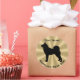 Silhueta preta maravilhosa de um Cão Urso Karelian com seus reflexos rápidos e sua natureza destemida é muito popular para caçar jogos agressivos, incluindo o urso contra um fundo semitransparente de explosão solar. Nós escolhemos um ouro amarelo, mas você pode escolher sua matiz favorita que aparecerá através de um pouco de mudo. Duas linhas de texto personalizável uma acima e uma curva abaixo.