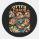 Uma ilustração divertida de lontras travessas espirrando água enquanto desfrutam de lanches, brinquedos e diversão de verão em um surto de caos alegre.