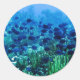 Traga de volta lembranças de snorkeling nas suas férias com uma vívida fotografia submarina de um cardume de peixes tropicais azuis colocados contra um fundo de coral verde.