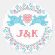 Pássaros adoráveis ou selo de envelope com um talo mexicano ou sudoeste. Esta design faz parte do meu design de convite picado estilo "Lovebird". Escreva as suas próprias iniciais (ou mensagem) no centro e escolha a sua própria fonte e cor da fonte. Só me contacte se quiser que este rótulo seja de cor diferente. A cor do coral é f3808f, o aqua é 69cce1