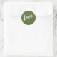 Adesivo redondo elegante e moderno com um script proeminente soletrando "AMOR" em um fundo ricamente colorido. Perfeito para o Dia dos Namorados, Dia dos Namorados, casamento, aniversário ou qualquer dia!