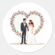 Inclui 20 pequenos adesivos numa única folha. Apanhe o amor e a celebração com este elegante adesivo com noiva e noivo dentro de um quadro cardíaco de folhagem.