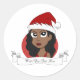 Design com uma ilustração da linda jovem africana americana de cabelo ondulado e chapéu de Papai Noel; com texto editável modelo, design de Natal por Radka Kavalcova