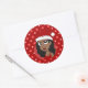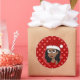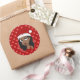 Design com uma ilustração da linda jovem africana americana de cabelo ondulado e chapéu de Papai Noel, design de Natal com fundo vermelho com estrelas, por Radka Kavalcova