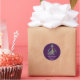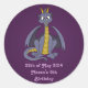 Adesivo redondo clássico com ilustração de um dragão roxo giro, conto de fadas / design de fantasia para crianças com texto modelo