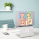 Cartoon clip art com quatro porcos sorridentes quadrados de dentro com cores diferentes.