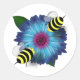 Adesivo Cartoon Honey Bees Meeting on Blue Flower