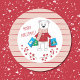 Um adesivo bonito para embelezar o seu correio de Férias e/ou os seus presentes. Ele tem um urso polar de cartoon fofo com um suéter vermelho. Ele é um saco de compras de carregando. As palavras dizem "Feliz Natal!" mas sintam-se livres para mudá-lo com o vosso próprio uso do modelo. Os autocolantes também têm uma borda cor-de-rosa com faixas vermelhas finas. © ArianeC Ilustrações — Todos os direitos reservados