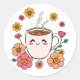 Uma linda caneca de desenho animado de Kawaii cercada por flores amarelas e cor-de-rosa. Faz selas adoráveis de envelopes.