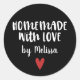 Um adesivo personalizado "caseiro com amor" em um fundo colorido preto. Faça-o seu adicionando seu próprio nome. Um bonito toque final para todos os presentes feitos à mão. Projetado para você pelo Blackberry Boulevard.