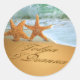 Um autocolante bonito, de praia, apresenta duas estrelas-do-mar brancas "de mãos dadas" na praia - perfeito para casamentos com temas de praia e festas. Use o botão PERSONALIZAR TI acima para adicionar texto. Se você quer que eu desenhar seus nomes ou outro texto na areia, entre em contato comigo ANTES DE COLOCAR SEU PEDIDO. Convites de casamento, envelopes, cartões de RSVP, bolsas de favor, koozies de cerveja e muito mais estão disponíveis! Para perguntas ou solicitações sobre outra cor ou outros itens com este design, entre em contato comigo: cheryl@cheryldanielsart.com. "Starfish Casal" por Cheryl Daniels © 2012.