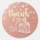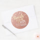 Favor de Casamento Obrigado Sticker Modelo - Roteiro de Letra Elegante e Casal Vintage Mason Jars e String Lights no Fundo de Textura de Folha Rosa Gold. Um Design perfeito para o seu grande dia. Todo estilo de texto, cores, tamanhos podem ser modificados para ajustado das suas necessidades!