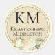 Personalize um adesivo com o sobrenome da noiva e do noivo. Há espaço para duas letras no monograma e dois nomes por baixo do monograma. Os nomes são complementados por: aquarela, rosas brancas baunilha e folhagem verde-inverno. Adicione Seu Monograma Nome Cream Black Classic Round Sticker