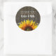 Adesivos de casamento personalizados com design trendy de girassol rústico para o seu dia mágico que se aproxima.