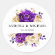 Elegante tema do ouro roxo real envelope de casamento adesivo com selo elegante buquê de roxo real, índigo, ouro, flores rosa amarelas e folhas de eucalipto. Entre em contato comigo para obter ajuda sobre a personalização ou se você precisar de outro produto com este design.