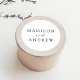 Coloque seus envelopes ou favores com nossos adesivos elegantes de casamento. Os autocolantes de casamento personalizados apresentam seus nomes em um roteiro de caligrafia preto com um sutil fundo branco e preto salgado. Design coordena-se com a nossa coleção de casamentos da Elegância Moderna.
