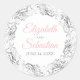 Estes belos adesivos de casamento apresentam elegante texto rosa e Cinza em um fundo branco com uma borda floral de folha fina prateada. O texto é totalmente personalizável e contém os nomes dos casais de casamento e a data do casamento. Excelente como etiquetas de favorecimento ou selos de envelope.