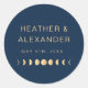 Adicione um toque de elegância cósmica ao seu evento com nosso adesivo redondo clássico de casamento celestial. Mergulhe na simplicidade encantadora do nosso design, que reflete a magia fascinante dos corpos celestes. Nosso design moderno, porém atemporal, apresenta uma série de fases da lua artisticamente renderizadas em dourado sobre um impressionante fundo azul-marinho. Esse toque de dourado adiciona um toque de calor e charme cintilante à base azul meia-noite fria, aumentando ainda mais o apelo convidativo da peça. O design mantém uma abordagem minimalista, permitindo que os elementos celestes realmente brilhem. Você pode personalizar facilmente para atender às suas necessidades, garantindo que cada peça ecoe seu estilo único.