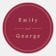 Este elegante adesivo de sela de envelope de casamento apresenta uma tipografia de ouro refinada em um fundo vibrante de burgundy. Com seu design simples e sofisticado, este adesivo adiciona um toque de elegância à sua papelaria de casamento. Personalizável em qualquer cor para corresponder ao seu tema de casamento, este adesivo de foca redondo é o toque perfeito para o seu dia especial. Mantenha seus envelopes selados e na moda com nosso adesivo do envelope do casamento.
