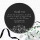 Este floral branco moderno de flor silvestre em um obrigado de fundo preto que você cola é simples e clássico. Personalize sua mensagem para que seus convidados saibam que você os aprecia celebrando seu grande dia com você
