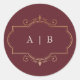 Adesivo casamento clássico do monograma de ouro de burgund