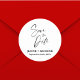 O Casamento da Caligrafia Romântica Salve a Data do Autocolante Clássico Arredondado Personalizado combina o encanto do eterno com elegância personalizada. Feito com uma caligrafia refinada, tem seus nomes e data de casamento, fazer um adorno perfeito para convites, envelopes ou favores de casamento. Sua forma redonda clássica simboliza unidade e continuidade, encapotando lindamente a essência do seu dia especial. Este adesivo serve não só como uma ferramenta prática para anunciar seu casamento, mas também como uma lembrança carinhosa que captura o romance e a singularidade do seu sindicato.