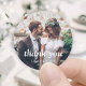 Adicione um toque personalizado elegante ao casamento, agradeça aos cartões e favoritos para festas de recepção com adesivos fotoredondos/selos de envelopes personalizados. O quadro e toda a redação desta modelo são simples de personalizar. "Obrigado" pode ser mudado para amor e obrigados, bem-vindos, as iniciais do casal, outro texto, ou pode ser totalmente apagado. (DICA DE IMAGEM: Uma maneira fácil de posicionar uma foto exatamente como você deseja é recortá-la antes de carregá-la no site do Zazzle.) O moderno design de camada branca apresenta uma tipografia mínima clássica e uma foto de sua escolha. Estas etiquetas são uma na moda para expressar gratidão aos amigos e à família por partilharem a vossa celebração especial do dia.
