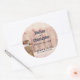 Obrigado, colega de casamento com um tema de país rústico. Uma lata velha de leite enferrujante com trigo e flores vermelhas desbotadas no fundo, colocada contra um pano de madeira esmaecido.