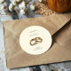 Ponha o tom para um dia de casamento inesquecível com este adesivo de Mentira de Casamento. Apresentando uma ilustração delicada e desenhada à mão de dois anéis de casamento dourados, este convite incorpora romance, unidade e amor eterno. A paleta de cores suave e muda e os detalhes artísticos gentis criam um humor sereno, enquanto o layout minimalista garante que sua celebração se sinta na moda e convidativa. Perfeito para casais que buscam um toque refinado, mas sincero, esta design harmoniza a sofisticação moderna com encanto rústico oferecendo uma bela guardiã para a sua celebração romântica de casamento.