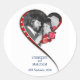 Um elegante adesivo clássico de casamento. Um coração girando encerra uma foto do casal feliz. Uma sensação de eterno a este belo tema do casamento. Este convite minimalista é perfeito para o seu tema romântico moderno. Este olhar romântico vai correr bem em qualquer época de casamento, primavera, verão, outono ou inverno. Excelente para um casamento moderno, e perfeito para um casamento clássico também!