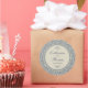 Um elegante bengala de casamento, um adesivo redondo, com uma cor damasco barroca azul e bege sobreposta com um inset redondo de duas tonalidades de riscas bege. Uma cor de texto azul correspondente conclui o design. Personalize o texto com o texto desejado.