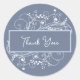 Fale seus cartões de agradecimento com este elegante obrigado de casamento Dusty Blue Flourish que você escolhe. O design do adesivo apresenta um folheto elegante florescente com fundo colorido correspondente. Papelaria de casamento, material de casamento e favoritos para festas disponíveis com este design também.