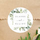 Este adesivo de casamento apresenta cor d'água, eucalipto, folhas verdes e quadrado. Para personalização mais avançada deste design, clique no link "Personalizar mais". Itens correspondentes também estão disponíveis.