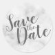 Clássico Elegante White Marble Invitation Suite : Salve o adesivo de data com título na fonte moderna de cinza em fundo de mármore branco.