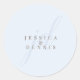 Manuscrito Elegante Mínimo Moderno Monograma Clássico Redondo de Casamento Adicione um toque de elegância ao seu casamento com esses adesivos redondos clássicos, modernos, minimalistas e elegantes. Feito em cores clássicas azul claro e café romano, esses adesivos são perfeitos para selar convites, favorecer bolsas ou adicionar um toque personalizado a qualquer item de casamento. O elegante monograma, com suas iniciais ou nomes, adiciona um toque de sofisticação e romance. Esses adesivos não são apenas bonitos, mas também funcionais, fazer seus detalhes de casamento ainda mais especiais. Perfeito para uma variedade de estilos de casamento, do clássico ao contemporâneo, esses adesivos certamente impressionarão seus convidados.