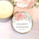 Este elegante adesivo de casamento é perfeito para selagens de envelopes e favores, e apresenta um buquê floral cor de pêssego, acentuado com verde macio, e os nomes de monograma da noiva e noiva ligados por um guião na moda. Veja a coleção do pacote de convites de casamento correspondente e mais produtos correspondentes. Se você quiser outros produtos ou outras formas de cores, entre em contato comigo através do Zazzle Chat.