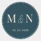 Na moda Monograma Etiquetas de Casamento com fundo verde e iniciais de fonte de cor de chicote para ambos os casais. Personalizou-o agora para adicionar iniciais de casais e data do casamento.