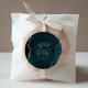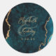Este elegante e moderno adesivo de casamento apresenta uma coloração aquosa azul-lacrimejante agate design com falso brilho dourado. Personalize facilmente o texto dourado, com os nomes da noiva e do noivo em caligrafia manuscrita sobre um grande e a data do casamento abaixo.
