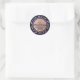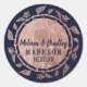 Folhas florais de rosa de ouro elegantes, quentes e modernas, impressas em escamas, e texto de escrita de pincel em azul marinho, adesivos para convites para casamentos. Este design clássico e sofisticado é perfeito para o casal de competição de tendências e na moda. Personalize com seus próprios nomes e data. Todas as impressão de fotos.