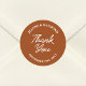 Melhore o seu casamento com o nosso casamento "Personalizado Moderno Terracotta Obrigado A Favor do Clássico Round Sticker." Apresentando um fundo de terracota quente com texto personalizável, esses adesivos adicionam um toque personalizado e na moda à sua celebração. Ideal para selar envelopes, decorar favores ou personalizar presentes, eles complementam qualquer tema de casamento com sua elegância moderna. Esses adesivos exclusivos transmitem obrigados sentidos, oferecendo um detalhe memorável e chic que torna seu dia especial realmente inesquecível para seus convidados.