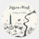 Adesivo Redondo Clássico de Casamento Desenhado à Mão Caprichoso