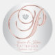Cartazes de casamento modernos, mas elegantes, para os envelopes ou favores. LETRA 'P' - Não de aspecto barato, mas caro e elegante. Sobrenome, noiva e noiva e data. Letra rosa de ouro Faux com coração de diamante falso. A fonte e o tamanho podem ser editados. A cor de fundo (cinza prateada) pode ser alterada. Designer de Contato para designs especiais (letras e cores)