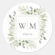Apresentando delicadas folhas de cor aquosa verde, esses adesivos botânicos podem ser personalizados com suas iniciais de monograma e data especial. Projetado por Thisnotme©