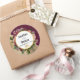 Salve a data/favor adesivos com um padrão de mármore de ouro e uma cor de entrelaçamento sólido em camadas diagonalmente juntas. Um círculo com uma borda falsa de folha de ouro, colocada sobre um bonito buquê floral com rosas, cravos e outras flores. Dois anéis de casamento dourados juntaram-se por baixo do texto. Personalize com seus detalhes dentro do círculo.