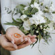 Uma composição elegante em um fundo bege para um casamento minimalista. Se harmoniza perfeitamente com o humor festivo, dando-lhe um toque único de solenidade.