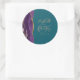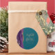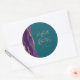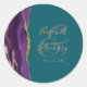 Este elegante e moderno adesivo de casamento apresenta uma coloração d'água púrpura e um design de geode, aparado com falso brilho dourado. Personalize facilmente o texto dourado sobre um fundo azul lacrimogêneo, com os nomes da noiva e do noivo em caligrafia manuscrita sobre um grande e grande painel.