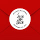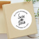 Apresentando o "Elegante Na moda Salve a data Classic Round Sticker" - uma maneira sofisticada de marcar seus núpcias futuros. Apresentando um design redondo com detalhes elegantes e elegantes, este adesivo adiciona um toque de refinamento aos seus preparativos de casamento. Feito com materiais de alta qualidade, é perfeito para personalizar convites ou favores. A sua forma clássica e o seu acabamento de na moda fazem dele uma escolha chique para casais que querem misturar elegância moderna com encanto tradicional.