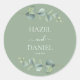 Adicione um toque botânico encantador à sua papelaria de casamento, favores ou embalagem com este elegante adesivo de casamento de eucalipto verde. Apresentando imagens de eucalipto de cor aquosa macia e tipografia branca clássica em um fundo verde sábio, este adesivo redondo é totalmente personalizável com seus nomes e data do casamento. Perfeito para selar envelopes, decorar bolsas favoritas, ou aprimorar seu tema geral de casamento com elegância natural coesa.